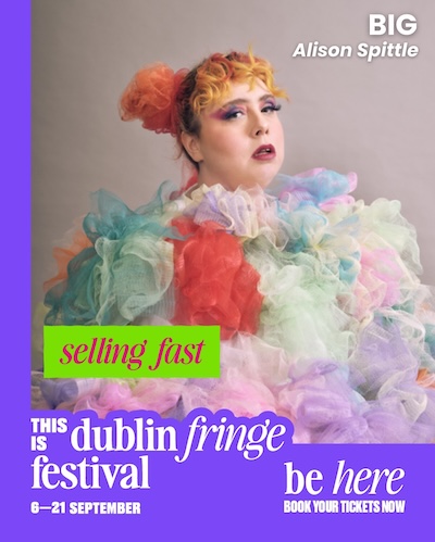 Photo: Dublin Fringe Festival Facebook. This new initiative applies to the following shows: Big Alison Spittle; Shredder: David McGovern; He Dies in the End: Liam McCarthy; Don’t Copy Me (Copy): Gift Horse Theatre; Eras Tour: An Improvised History Musical: Bum Notes; The Chalice: Brigid Leahy; Libya!: Farah Elle; Cult of Aerobic: Emily Bradley; A Piano Mediation: As If I Always Knew; Amsterdam: Made Up Productions, and Hungry Grass/Stray Sod: Wandering Stories Theatre.