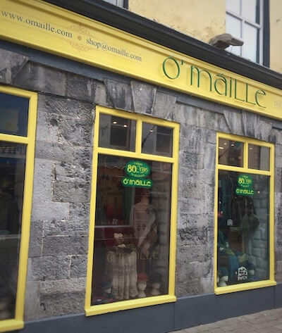They include The Donegal Shop in the Stephen’s Green Shopping Centre in Dublin; the Kerry Woollen Mills in Killarney, Co. Kerry; O’Maille’s of Galway; Achill Knitwear in Achill, County Mayo; An Pucan Craft Shop in Kilronan, Inishmore (Aran Islands); and in the Blarney Woollen Mills shop in Cork and at the Shannon Irish Design Store in the Bunratty Castle Folk Park in County Limerick.